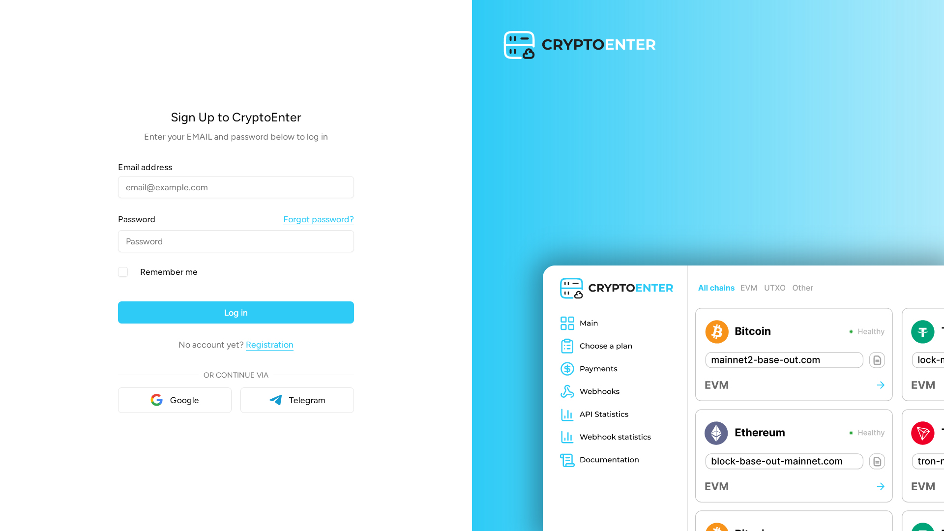 To start using CryptoEnter's services, you need to register an account. Youβll be ready to go in just a few clicks!