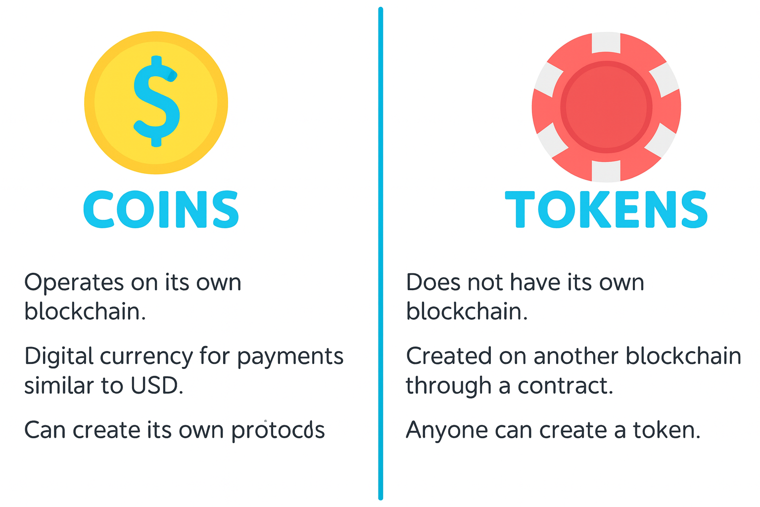 Another notable difference between tokens and coins is what they represent. While crypto coins are essentially digital versions of money, tokens can stand for assets or deeds.