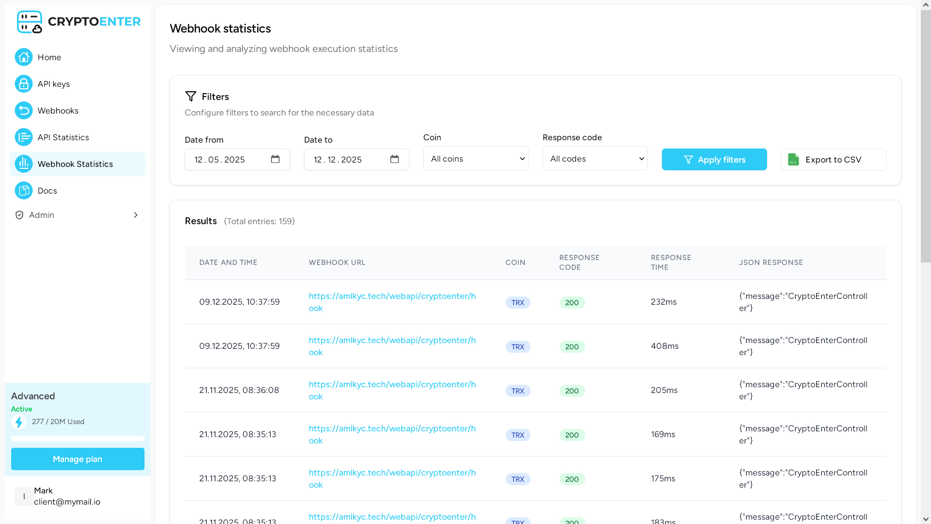 These tools help ensure optimal use of CryptoEnterβs services and keep you informed of key metrics and events related to your account. Dashboard