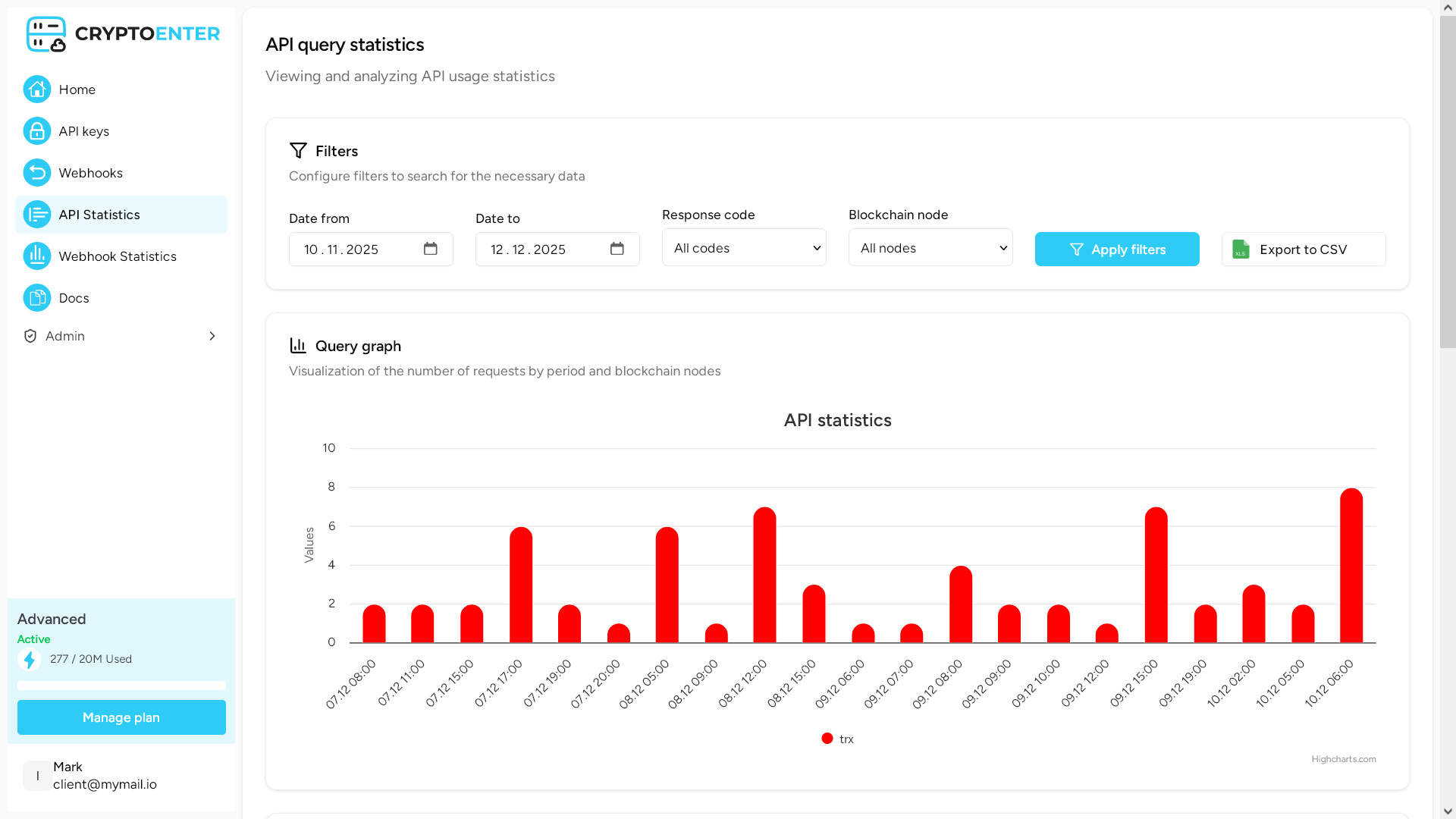 Track and manage your usage and node service subscriptions with CryptoEnter.